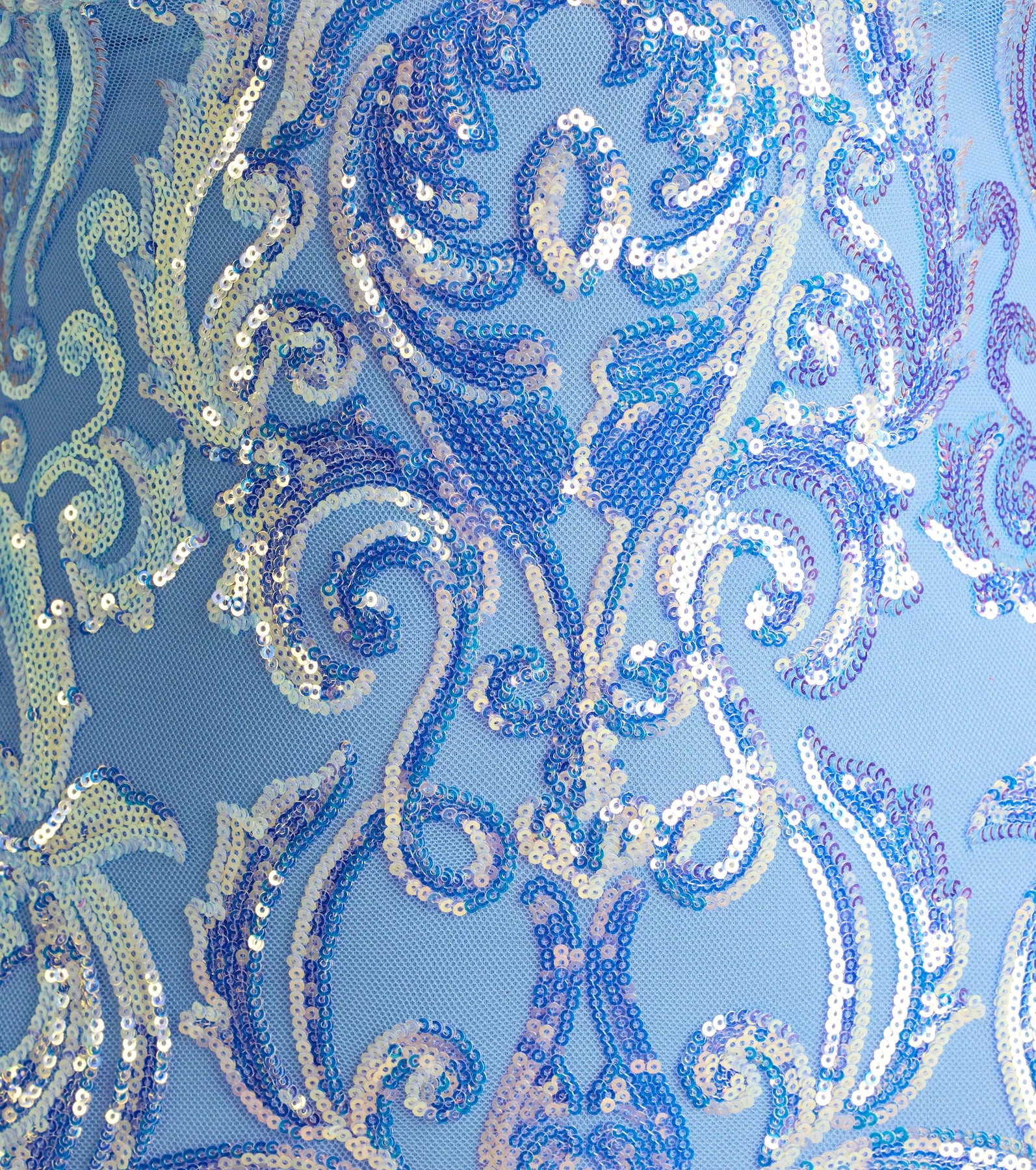 Enchant with a gorgeous aura in the Ilse formal dress crafted with iridescent sequin embroidery for glamorous sheen. The open lace-up back leads to a floor-length mermaid silhouette with a stunning train for a fairytale vibe.
