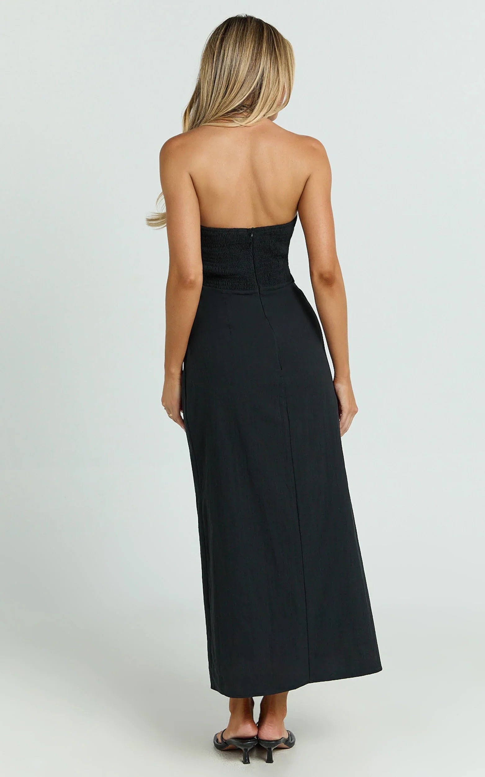 Lindley Midi Dress is your confident new face of minimal glam, finished with sharp angles at the neckline for a modern feel and a nod to sculptural chains in your accessories. Style it with strappy heels and a micro shoulder bag to keep the focus on the curve-hugging fit. A go-to little black number that elevates your wardrobe and nails every RSVP.